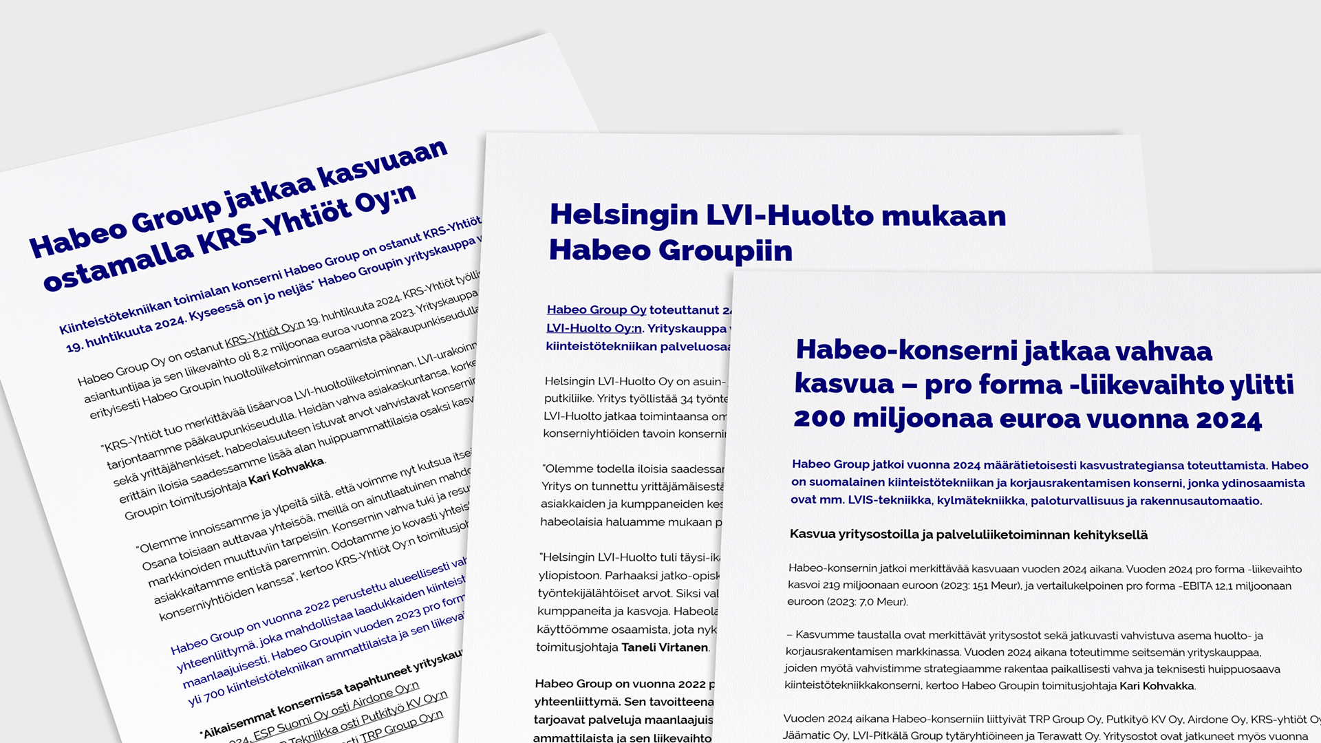 Kasvu tuo mukanaan myös paljon uutisoitavaa. Olemme olleet mukana toteuttamassa yrityskauppatiedotteita ja muuta mediasisältöä, jotka tukevat konsernin näkyvyyttä niin ansaitussa kuin maksetussakin mediassa.