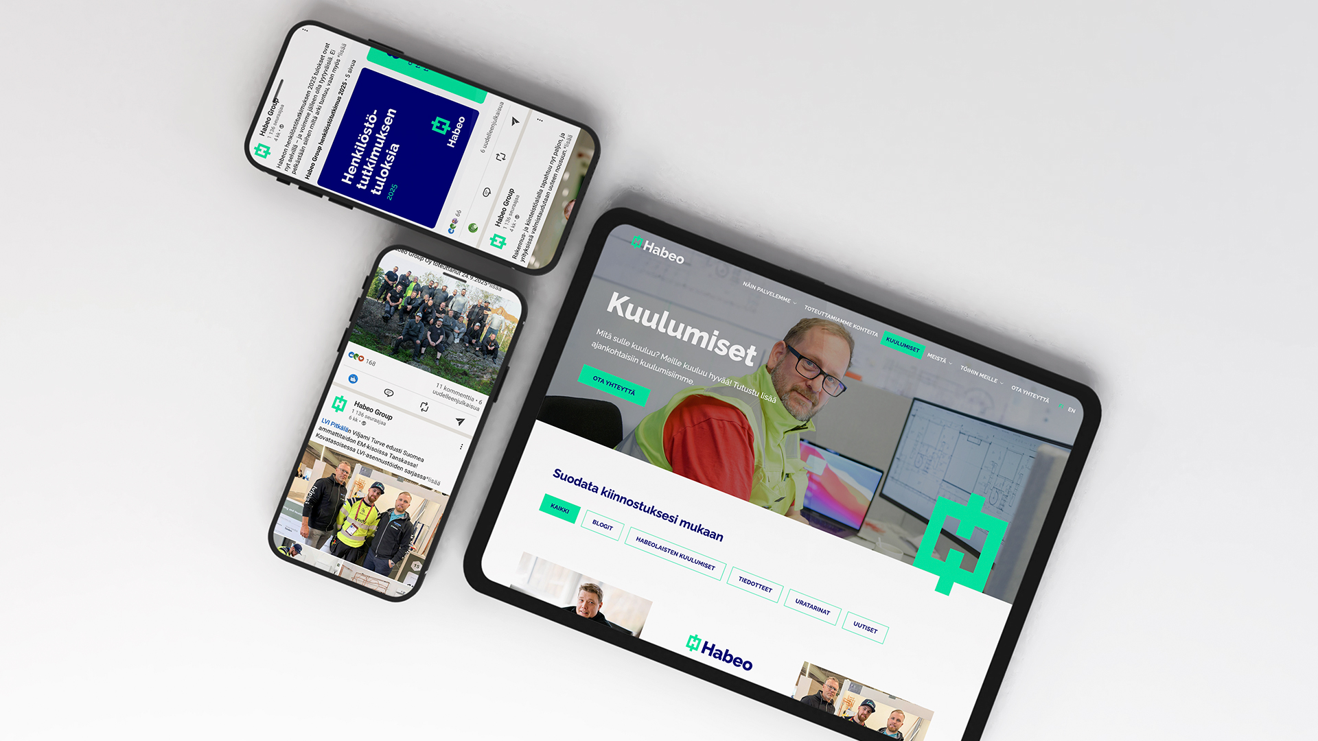 Olemme kirkastaneet Habeon viestintätyyliä ja arvolupauksia sekä tuottaneet referenssejä, työntekijätarinoita ja konserniyhtiöiden kuulumisia, jotta Habeolla tehtävä työ näkyy ja kuuluu myös ulospäin.