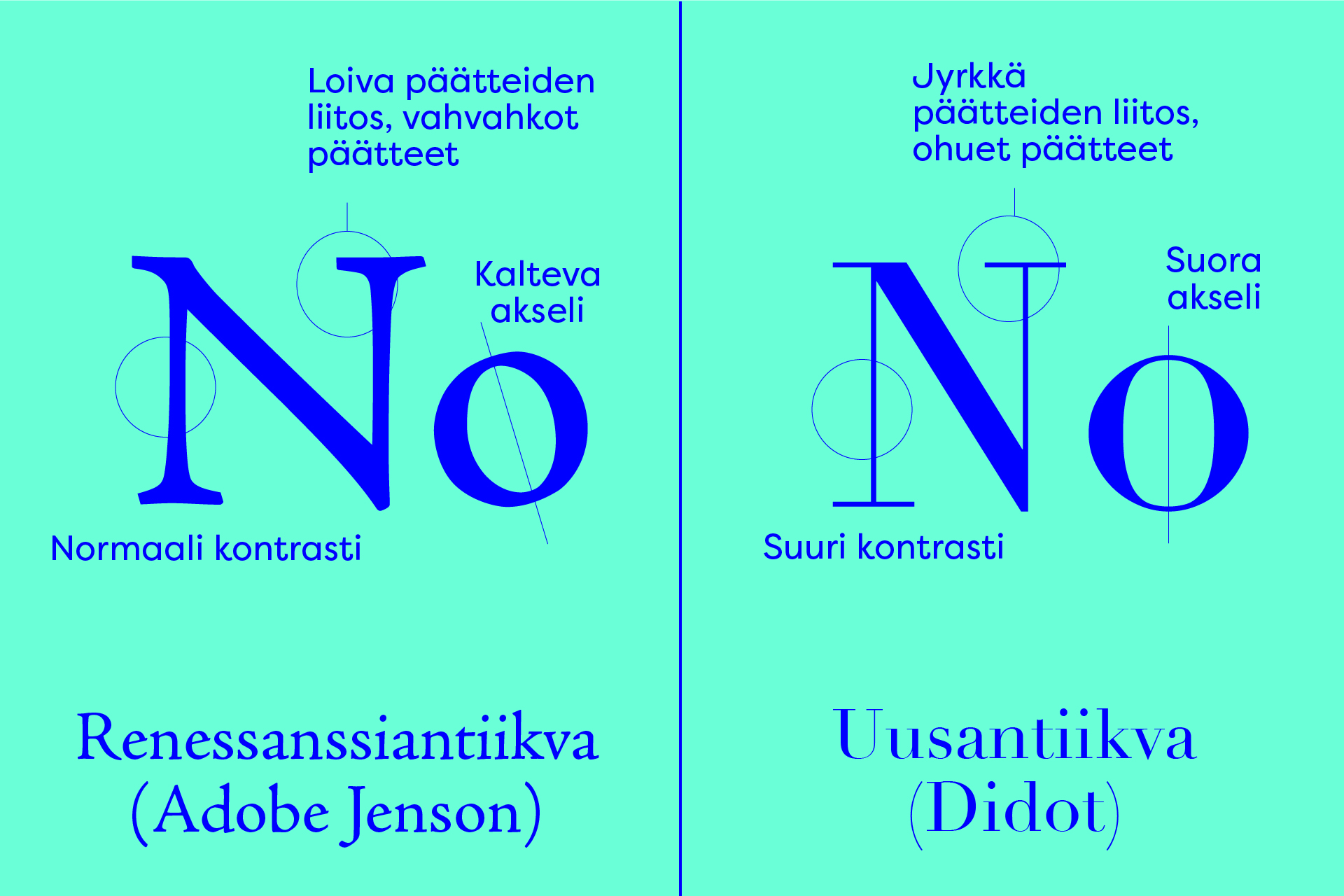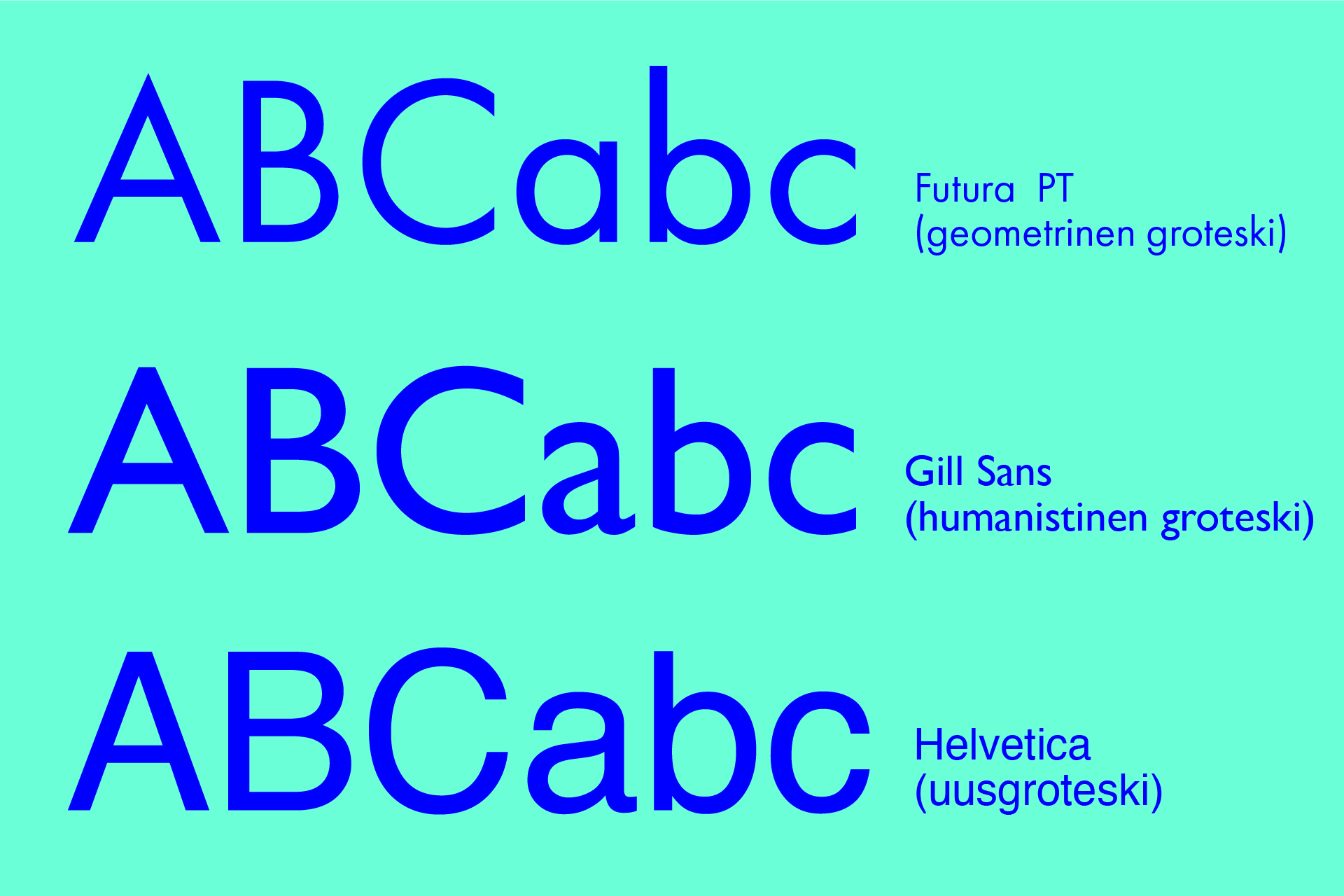 Antiikva ja groteski ovat molemmat yhtä käytettyjä kirjaintyylejä
